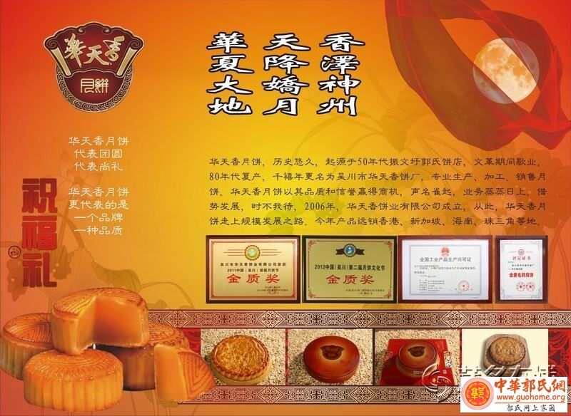 尊敬的各位会员: 中华郭氏网始建于2006年10月,中华郭氏网从个人百度空间到DZ论坛、门户、微博、微信,从PC端到移动客户端,我们紧跟时代步伐为郭氏宗亲提供及时家族资讯服务。所有的这一切,都离不开各位宗亲的参与和付出,离不开各位宗亲对郭氏网上家园的爱护。我们决定于2016年10月在河南三门峡市举办“中华郭氏网十年庆典”。 根据2016年度计划安排,为庆祝中华郭氏网成立10周年,,中华郭氏网特举办“我与中华郭氏网”征文活动,诚邀每一位宗亲会员援笔成章,写下您与中华郭氏网的故事。我们期待与您共同见证这一非凡时刻。 本次征文具体要求如下: 一、征文时间 2016年8月1日至10月1日。 二、征文内容 1、必须实名,结合自身经历,讲述与《中华郭氏网》之间的不解情缘; 2、寻亲故事、宗亲联谊等内容力求真实、生动,表达真情实感。 三、征文体裁 1.体裁不限。题目自拟,作品体裁不限,可随笔、杂文,散文。字数在1200字以内为宜。 2.要求征文稿件系作者本人创作,内容真实,文笔流畅,文责自负。 四、投稿方式 1.征文请注明“中华郭氏网十周年征文:+自拟题目”字样。 2.自行名发布中华郭氏网论坛【中华郭氏网十周年庆】专栏。 五、征文评选 本次征文设置优秀奖10名。征文活动奖品——郭式饼店老字号“华天香月饼”。 由中华郭氏网管理团队评审和网络评选。分别颁发证书和奖品,并邀请获奖代表参加中华郭氏网十周年庆颁奖仪式和座谈会。 十年成长,感恩有你!为分享家族亲情、成长的喜悦、展望未来………。我们真诚期待您参与征文活动,写出您与中华郭氏网的因缘际会、在中华郭氏网经历、见证、回眸展望,述说家族的亲情和感动。或许,在您笔下流淌的是一次难忘的回忆,是一段精彩的故事,是一个庄严的时刻,是一瞬间的感动…… 我们都将与您一起品读、一起分享! 中华郭氏网 2016年7月31日 相关阅读:华天香月饼,来自中国月饼之乡 感谢郭式饼店老字号——吴川市华天香饼业有限公司董事长、湛江市郭氏宗亲会常务副会长郭康华宗长为征文活动提供奖品——“华天香月饼”。 郭式饼店老字号”吴川市华天香饼业有限公司”,专业的生产、加工、销售各种烘焙食品的企业。公司以品质为灵魂,以建立华天香金质品牌为目标,从选料、制作、烘焙、检测到成品包装,全采用无菌生产线完成。 公司典型产品为华天香五仁金腿大月饼、莲蓉蛋黄月饼、鲜果味月饼等,主营产品包括年糕、蛋卷等烘焙食品,是吴川市首家综合性的食品企业,同时也是一家比较有特色的企业。 华天香饼业,起源于50年代振文圩郭式饼店,文革期间歇业,80年代复产,专业从事传统月饼的生产、加工、销售。 二、传统工艺,100%手工精制而成 华天香,荟萃吴川梅录百年坊间工艺精髓,坚持100%纯手工制作,最大程度保存了月饼的本色风味与营养成分。 三、独家配方,好吃不上火更健康 为了避免传统月饼易上火弊端,华天香在配料中加入独家配方,有助于平息肝火,自然养生,既不影响月饼口感,更绿色健康。 四、三届蝉联,月饼之乡金质品牌 华天香,蝉联三届吴川月饼节“金质品牌”荣誉称号,获得消费者与同行的一致认可。其产品远销香港、新加坡、海南、珠三角等地。 广东吴川市华天香饼业有限公司董事长、湛江市郭氏宗亲会常务副会长。 郭康华,亲情热线: 138 2710 9168 |