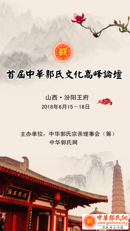 各位会员、相关宗亲会: 中华郭氏网12年来在郭氏起源、家谱等方面做了大量的研究,发表了一大批有影响力的原创文章,始终走在郭氏文化研究的前沿,部分研究成果、观点被专家、学者采纳、引用,如被邀请参加:河南卫视《知根知底郭家大事》、安徽卫视《百家姓 郭姓》大型姓氏节目的录制,我们都对节目脚本进行审核。虽然有一些成绩,但是在郭氏文化研究力量需要进一步加强。 2018年中华郭氏网迎新年会(成都)建议2018年适当时机召开一次中华郭氏文化研讨会,对之前的研究成果进行系统梳理,集结正式出版《郭氏之源》、《郭氏祠堂》。并组建郭氏文化研究团队,进一步收集、研究郭氏家谱,系统梳理全国郭氏家族分布、世系。推进第二届中华郭氏十大祠堂工作。现根据2018年度中华郭氏网计划安排通知如下: 一、宗旨: 研究郭氏文化,弘扬郭氏家风。 二、主题: 郭氏起源、迁移、分布,寻根、参观。 纪念郭泰诞辰1890周年活动。 三、时间、地点: 时间:2018年6月15日—18日 地点:山西省汾阳市汾阳王府。 四、行程: 6月15日报到,山西汾阳。 6月16日,全天会议。 6月17日上午,纪念郭泰诞辰1890周年活动(介休市郭泰墓园) 下午,会议。 6月18日(端午),返程。或是自行参观(平遥古城、洪桐大槐树)。 五、人员: 1、中华郭氏网会员。各地负责修谱的负责人。 2、将邀请权威郭氏文化研究专家、学者参加。 六、议程 (待补充) 七、费用: 本次活动为自主参与的寻根活动,将由旅行社统一安排行程,共计: 1500元\人。 中华郭氏网是公益性家族网站,仅作为本次公祭活动牵头召集,参加人员是自愿报名、自发组织,所以安全自负,费用均为自理。 八、会务组: 1、 会务组成人员:郭在权、郭子政、郭继勇、郭起珍、武文军.....。 2、报到酒店:山西省汾阳市贾家庄裕和花园大酒店(四星)。 欢迎提出建议,积极参与家族活动。 特此通知 中华郭氏网 2018年3月31日 |