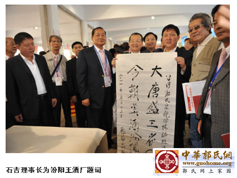 世界郭氏宗亲总会成立于1982年,至今已建会33年。石吉理事长从2007年接任以来,为郭氏宗亲会做了大量工作,特别是在台北市前任市长郝龙斌的支持下,总会全体努力,于2001年建成郭子仪纪念堂,2012年元月5日即农历腊月十二隆重举行了落成庆典,山西省郭氏文化研究会应邀组团参加。