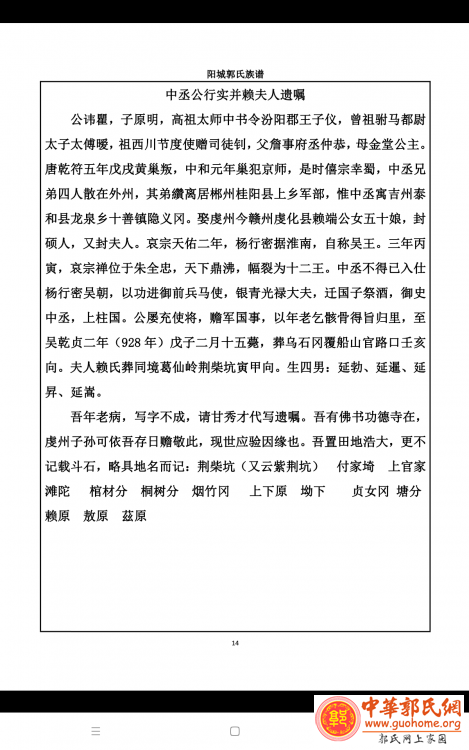 郭瞿(中丞公)行实并赖夫人遗嘱 |