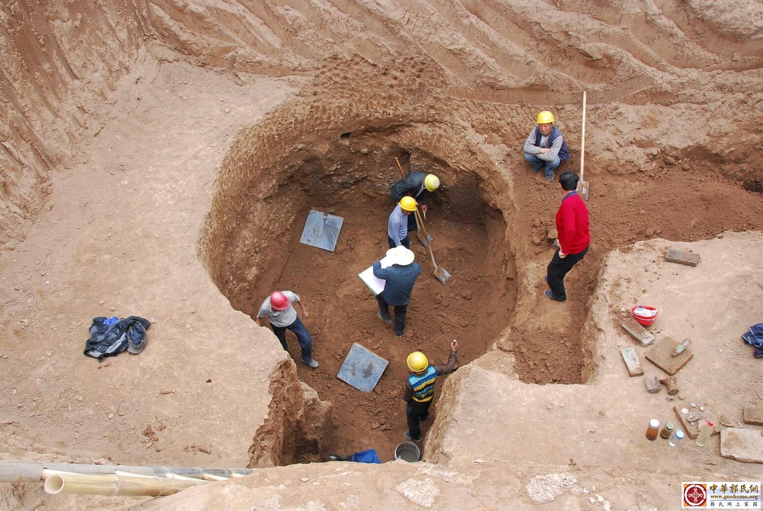 前言:2012年3月底西安市文物保护考古研究院挖掘郭锜和卢士绚墓。郭锜为郭子仪长子郭曜次子,夫人卢士绚为大理寺丞卢仲容之女。卢士绚的墓志上写着葬于“先舅姑茔东二百八十步”,也就是说其墓距离其公婆墓葬之东二百八十步,在郭锜墓志中则写有“西去先太傅玄堂壹里”。在夫妇二人各自的墓志中,分别描述了郭曜夫妇墓葬的位置,并且用了不同的距离单位,这就为唐代距离单位“步”与“里”提供了换算的标准。如此换算下来一里等于280步左右。根据郭子仪之孙郭锜、卢士绚合葬墓记载,2012年4月西安市文物保护考古研究院准确定位挖掘郭曜夫妇合葬墓(郭子仪长子)。 西安市文物保护考古研究院挖掘郭子仪长子郭曜夫妇墓现场,2012年4月17日图片