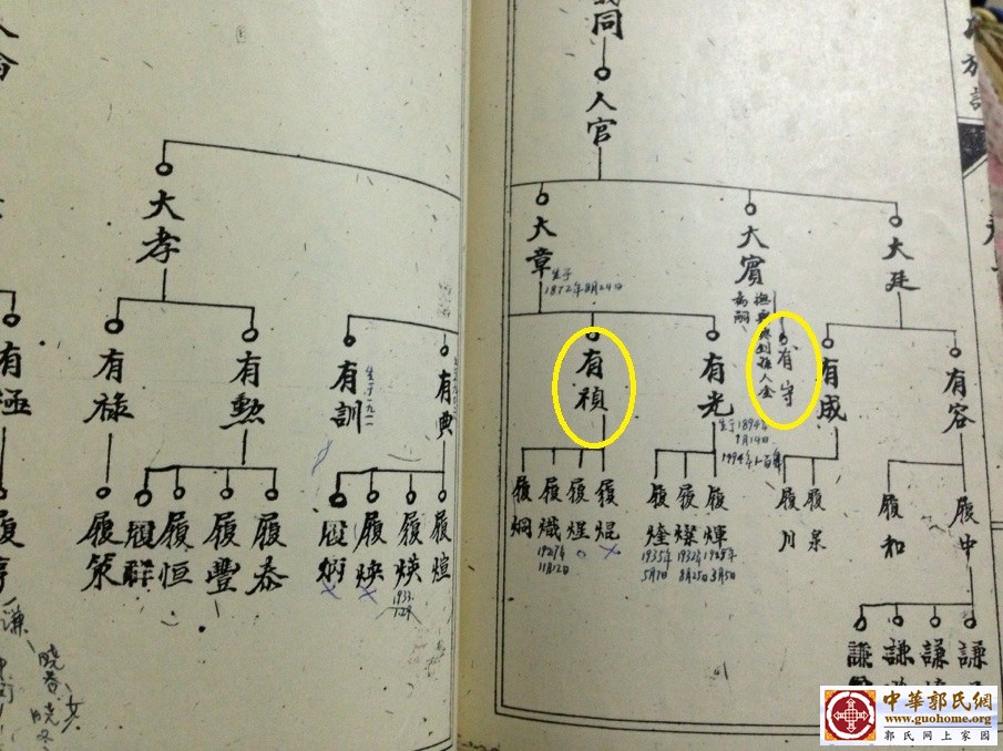 我的堂妹转告:郭有守的父亲(郭大宾)和我们的曾祖父郭大章是亲兄弟,他父亲是老二,我们曾祖父老三,给您发一张我从我父亲祖谱上拍的照片。郭有守的母亲是我们曾祖母的侄女,跟我们的血缘关系还是较近的。