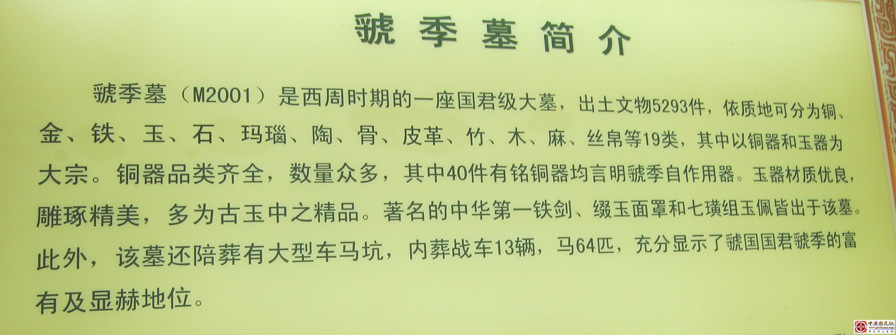 惟公元2013年4月4日,岁次癸巳,节届清明,时逢盛世,序属三春,崤山北麓,黄河南滨,虢宗后裔,郭氏子孙,于周封成虢东迁地,今之河南三门峡,设供行祭于虢国博物馆,谨以鲜花时果之荐,敦诚敦敬之礼,恭祭我郭氏列祖列宗,辞曰: